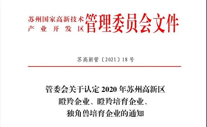 近日,蘇州高新區(qū)管委會發(fā)布了2020年瞪羚企業(yè)、瞪羚培育企業(yè)、獨角獸培育企業(yè)認定企業(yè)名單?;⑶鹩跋駱s獲蘇州高新區(qū)六家獨角獸培育企業(yè)之一。