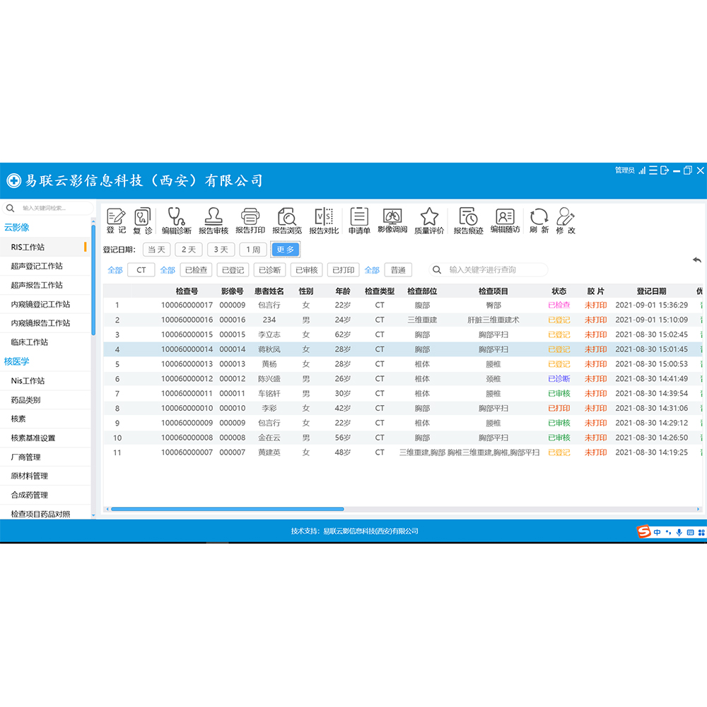 全景影像診斷,用心改變,讓診斷突破極限,賦能健康中國(guó)。滿足院內(nèi)影像科室和臨床科室靈活歸檔管理和調(diào)閱影像。產(chǎn)品組成:登記工作站、 技師工作站、 放射診斷報(bào)告工作站、 DICOM影像處理工作站、 臨床瀏覽工作站, 刻錄備份軟件、 超聲/內(nèi)窺診斷工作站、統(tǒng)計(jì)工作站等。